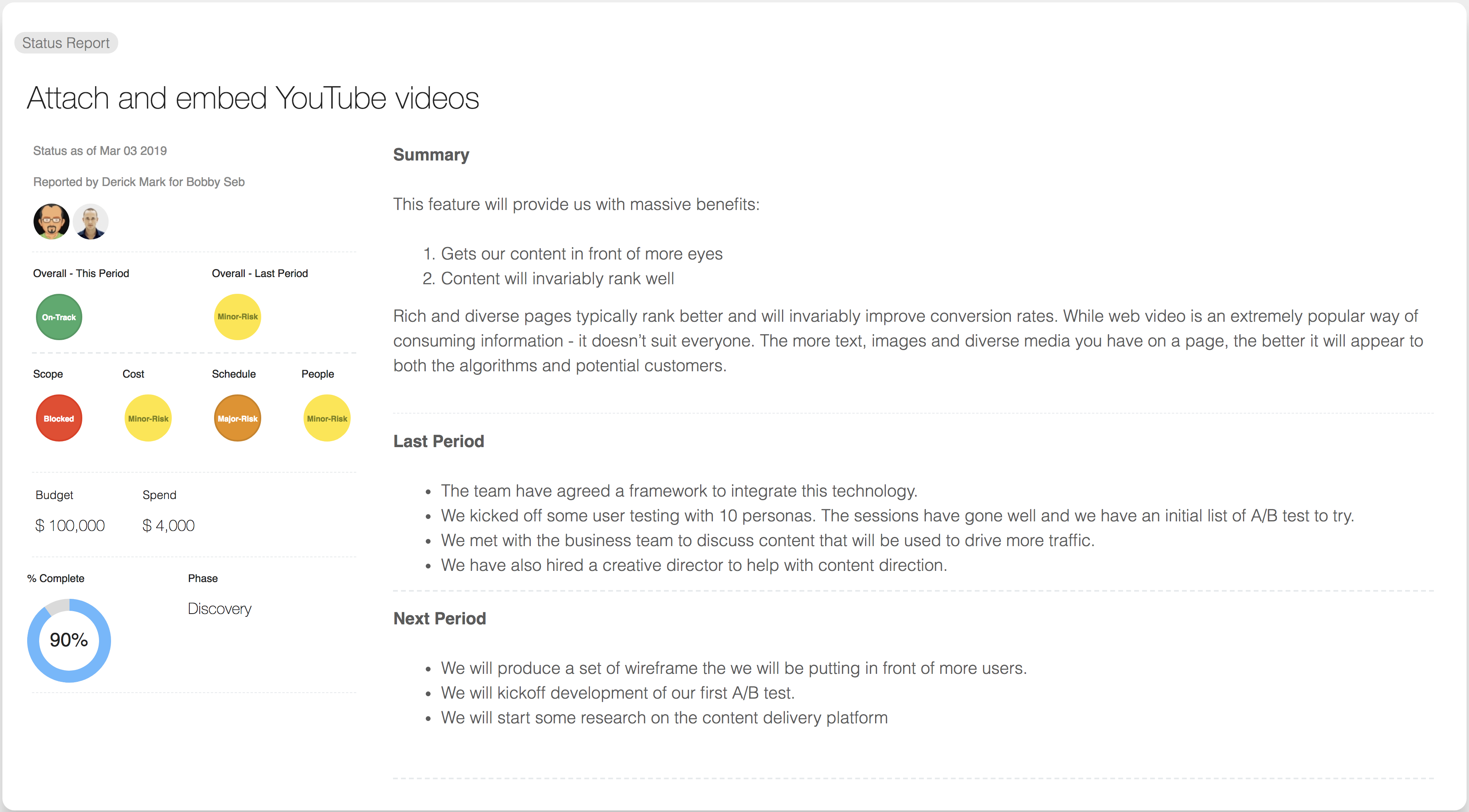 Reduces the administrative efforts in coordinating information for multiple workstreams and encourages more collaboration, making your organisation super efficient at continuously bringing together multiple status comms.